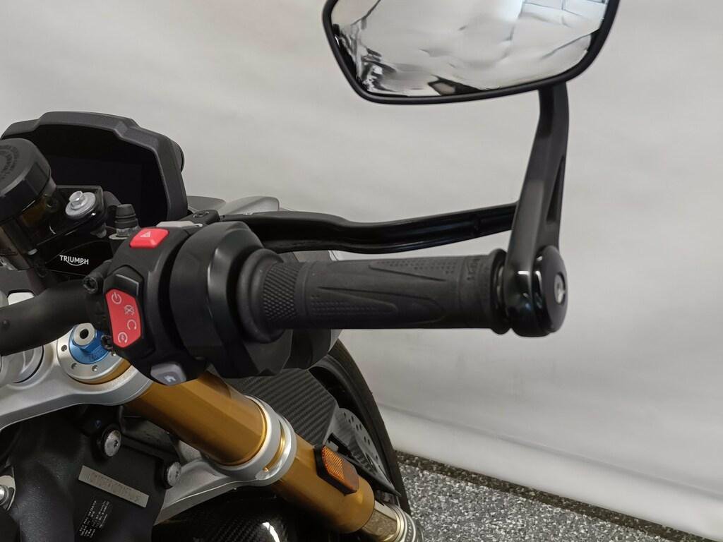 ABS, Controllo di trazione regolabile, 5 modalità di guida, Quickshifter, Sospensioni öhlins regolabili, TFT con connettività, Keyless, Cruise Control, Frecce a led, Fari a led, Parafango anteriore in carbonio (Originale Triumph), Unghia mono posto (Originale Triumph).